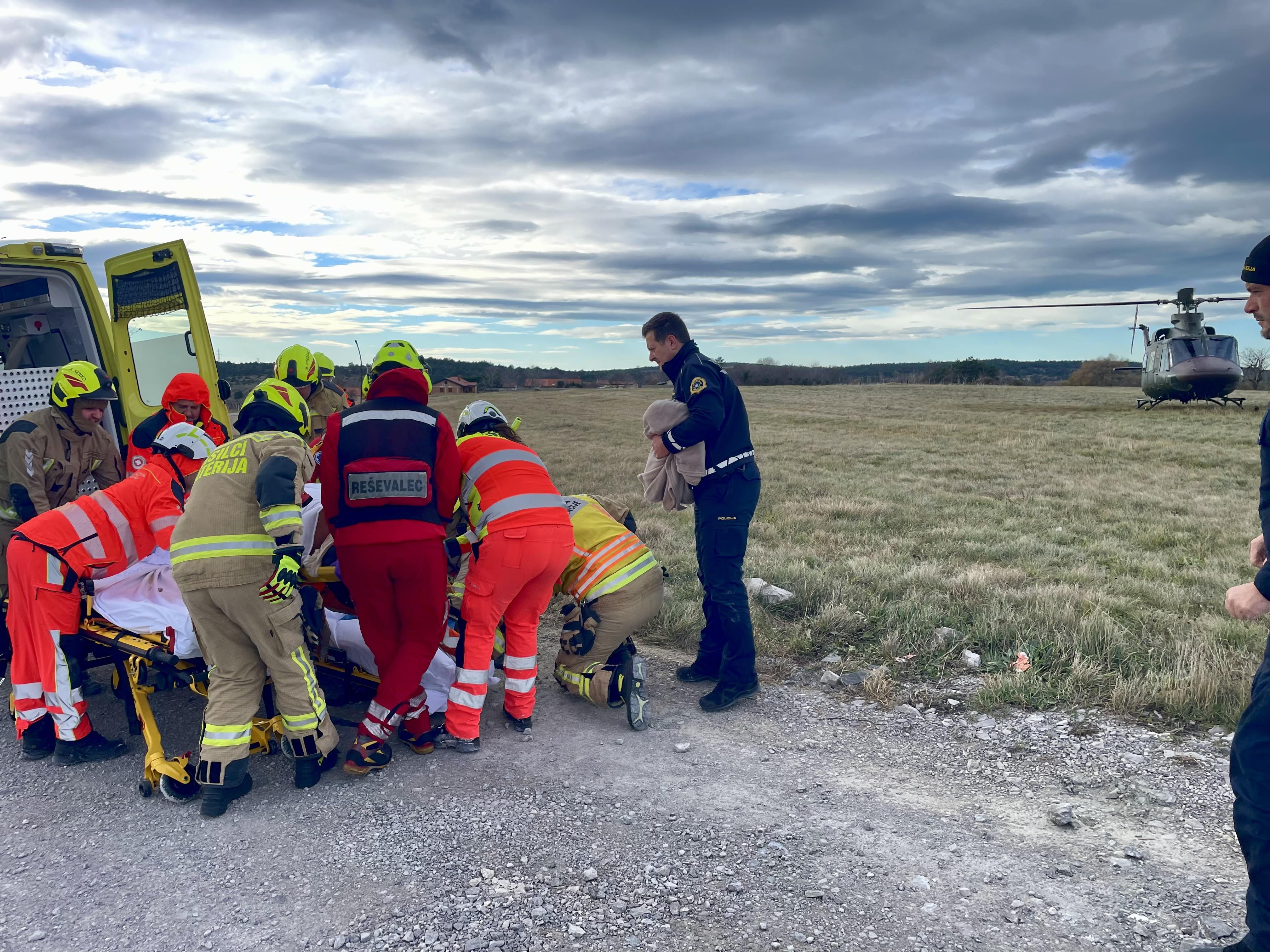 Po pozivu ReCO Postojna so na intervencijo izvozili gasilci PGD Materija, ki so skupaj z reševalci vstopili v tunel, zavarovali kraj, pomagali pri nudenju prve pomoči ponesrečenemu in transportu v reševalno vozilo, v nadaljevanju pa na travniku pred Beko vzpostavili pristajališče za helikopter. Reševalci so poškodovanega z reševalnim vozilom odpeljali do pristajališča, kjer ga je prevzela helikopterska ekipa NMP s helikopterjem Slovenske vojske in ga odpeljala na nadaljnje zdravljenje v UKC Ljubljana. Intervencija je bila zaključena ob 12.45.