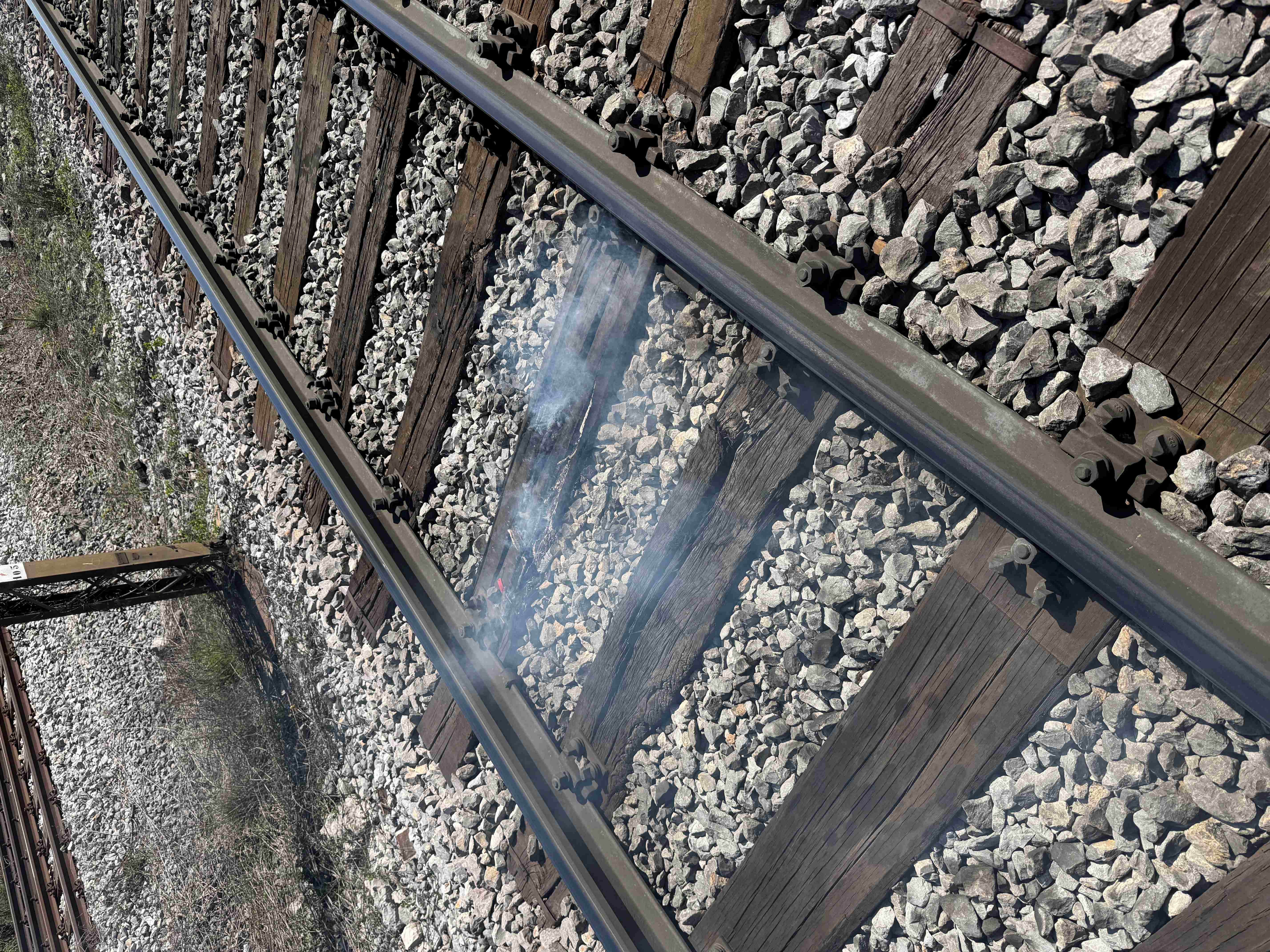 Ob železniški progi v Prešnici je zagorela trava in železniški prag.
