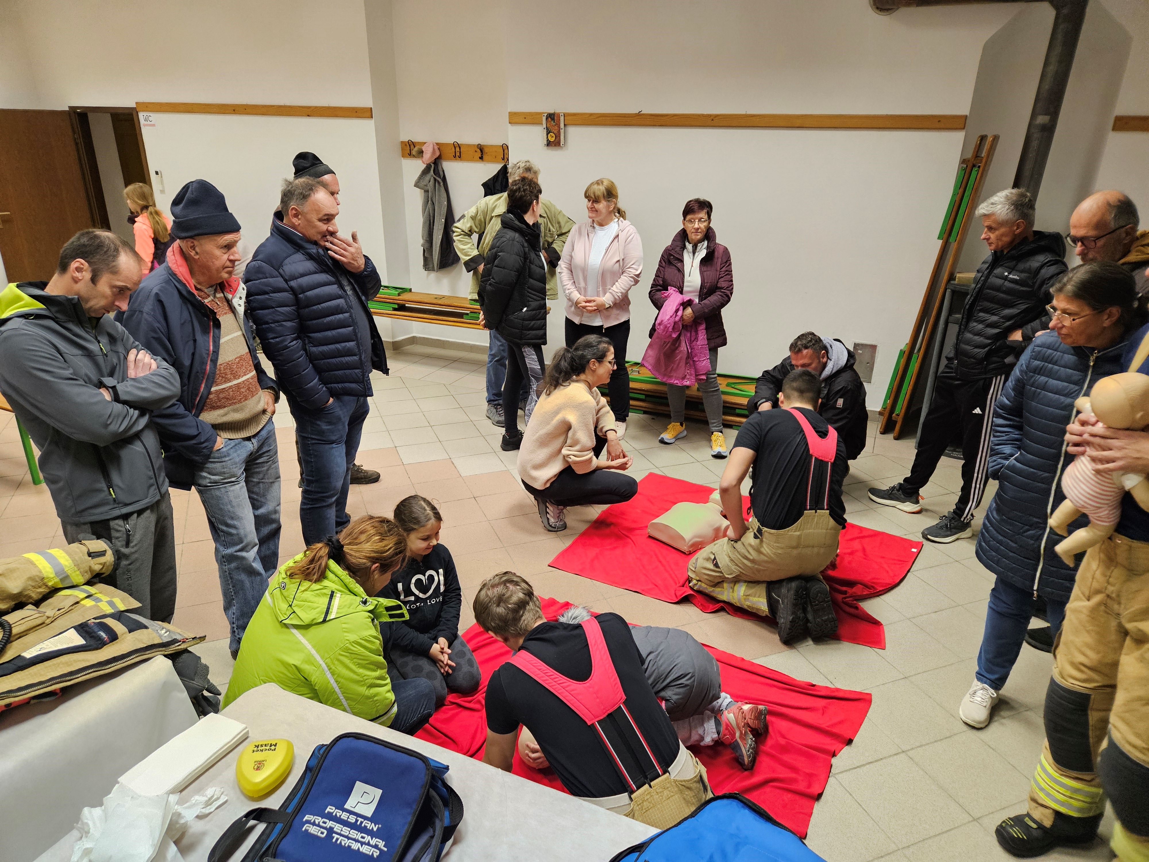 Po vaji so bolničarji PGD Materija, vaščanom Prešnice prikazali še temeljne postopke oživljanja z uporabo AED.