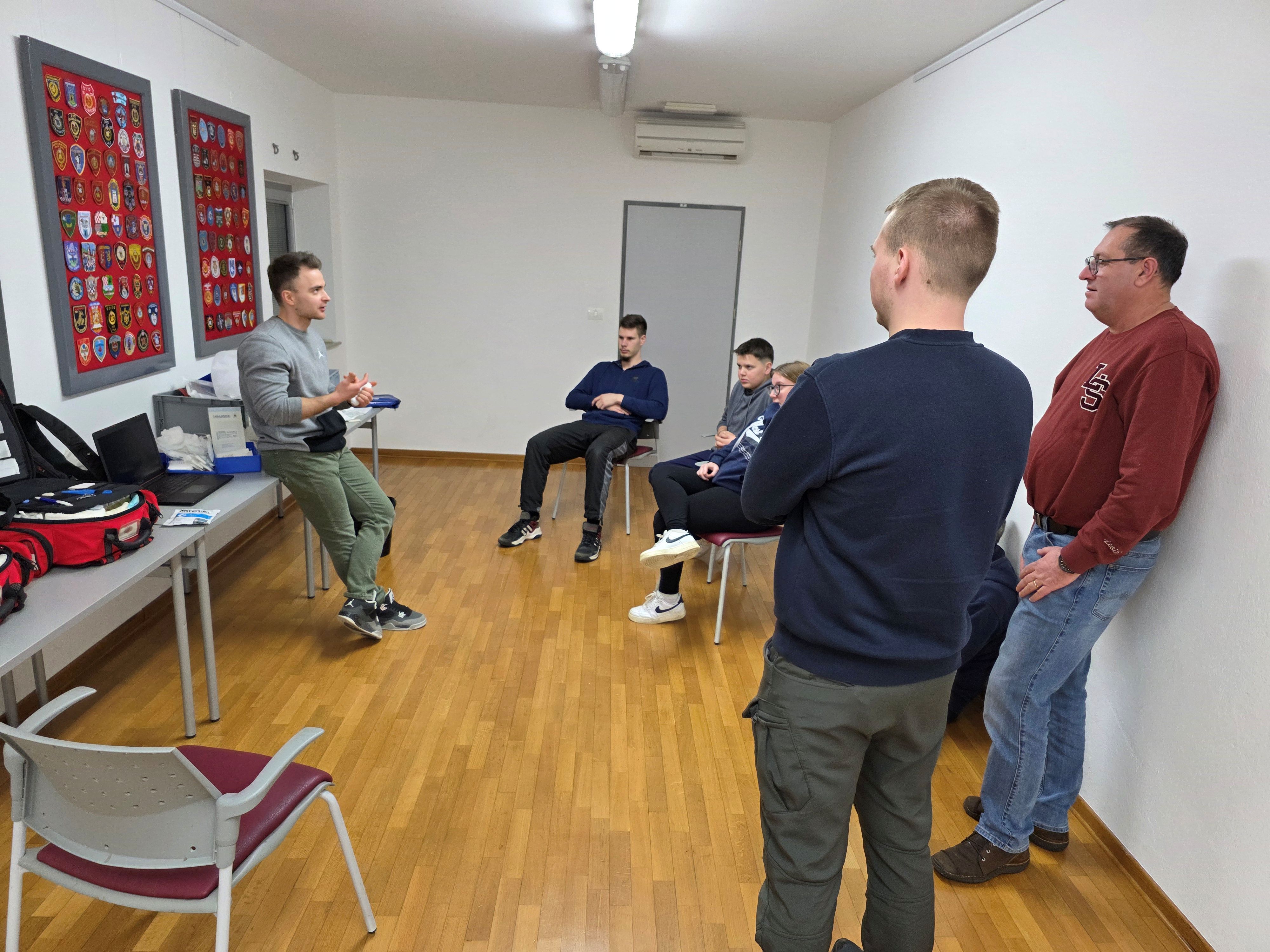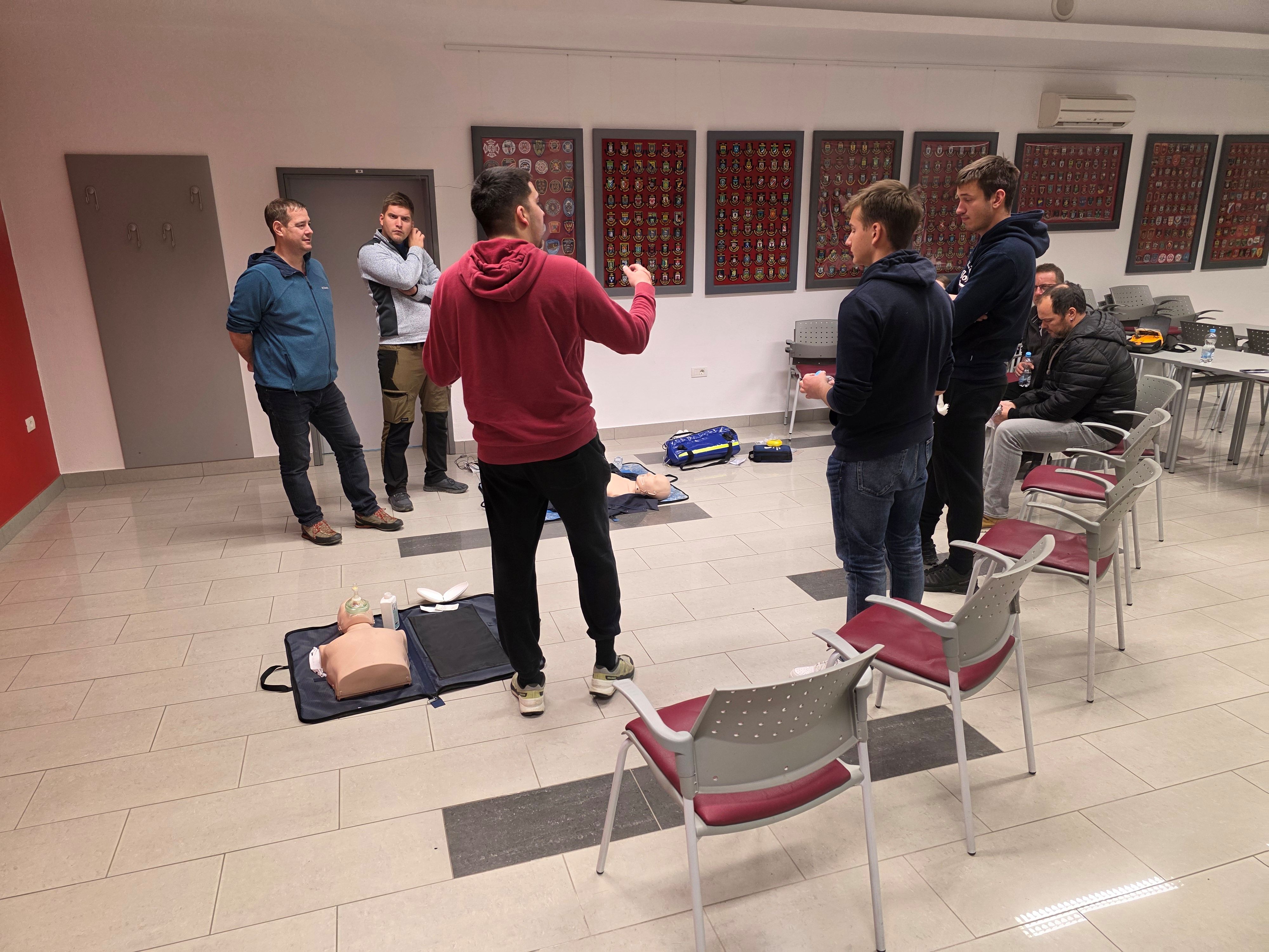 Usposabljanje so vodili reševalka in reševalca ZD NMP Sežana Tjaža Meze, Matic Petrovič in Aljaž Renko, ki je tudi član PGD Materija.